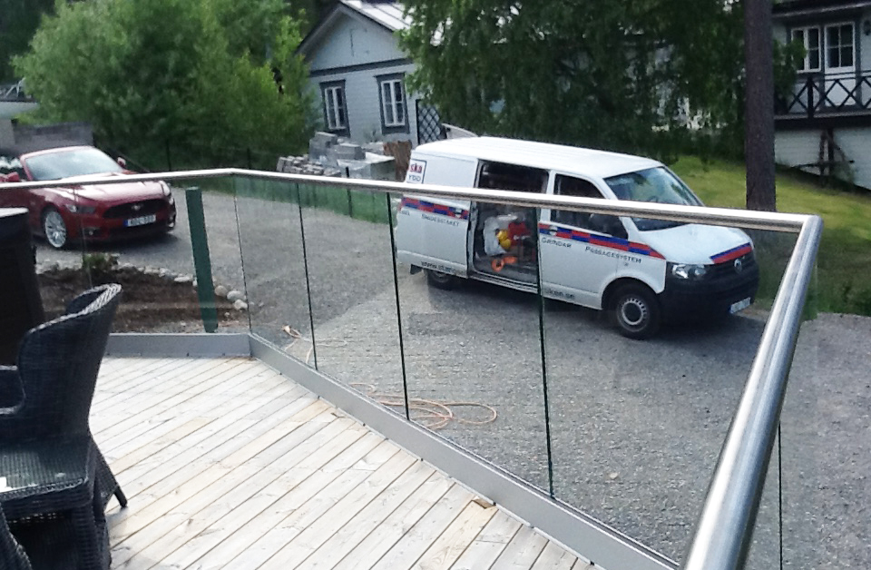 Vi använder hårt kvalitetstestade glas till alla våra räcken. Välj mellan klassiskt räcke med stolpar eller ett modernt stolpfritt räcke.